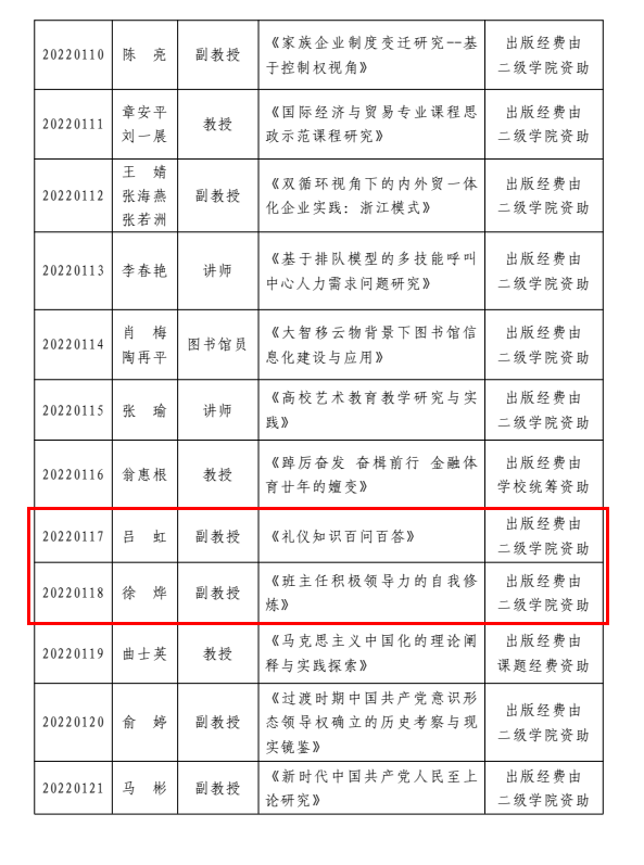 3月,由银领学院职业素质教研室主任徐烨副教授主持撰写的专著《班主任积极领导力的自我修炼》、由职业礼仪教研室吕虹副教授主持撰写的专著《礼仪知识百问百答》获得学校资助立项,成为银领学院推进国家“双高计划”子项目建设的成果之一。