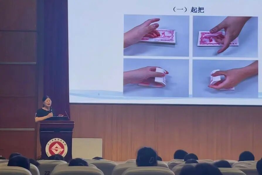 学院职业技能教研室孙淑萍老师在明理报告厅为江湾小学四年级和六年级学生开展以“人民币的故事”为主题的科普讲座。孙老师围绕人民币的历史演变、票面图案的设计意义及日常防伪技巧,通过图文结合、案例讲解的方式,将专业晦涩的金融知识转化为生动易懂的内容。孩子们专注聆听,大胆作答,在互动中初步建立对货币的认知,为后续体验活动奠定了基础。