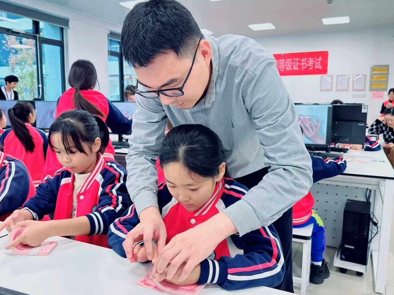 近日,我院在绍兴校区实验室面向绍兴沥海街道中心小学的师生,成功举办了一场“职业点钞”体验活动。此次活动由我院职业技能教研室与产学合作(社会培训)办公室共同组织,旨在通过职业实操体验,帮助青少年近距离感受职业技能的魅力。