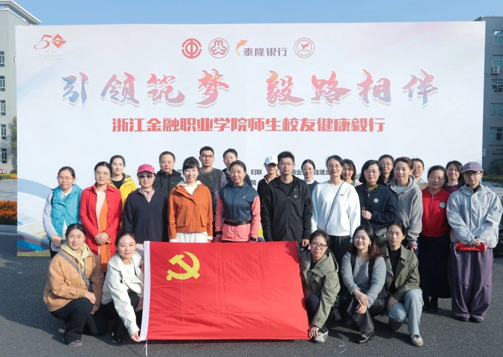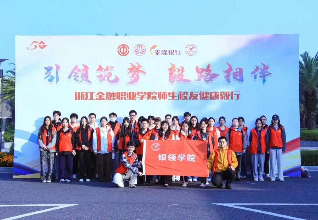 为进一步培养和锻造银领学子强健的体魄、坚毅的品格、坚定的意志,传递健康、协作、奋进的理念,营造积极向上、团结互助的良好氛围,11月15日上午,由学校工会、妇联,浙江泰隆商业银行钱塘支行主办,银领学院承办的“引领筑梦•毅路相伴”师生校友健康毅行活动成功举办。学校工会副主席翁惠根,银领学院院长潘锡泉,浙江泰隆商业银行钱塘支行行长蒋生火,银领学院副院长胡烨丹,学校各分工会教工代表等出席此次毅行,银领学院2026届订单班学生参与此次毅行。