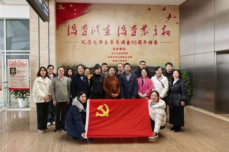 在浙江自然博物馆,党员们驻足观看寻乌调查相关的历史文献、实物展品与影像资料,详细了解1930年毛泽东同志在江西寻乌开展为期一个月调查研究的全过程。展览中,“没有调查就没有发言权”“从群众中来,到群众中去”等珍贵手稿与历史场景再现,让党员们深刻领会到实事求是、群众路线的核心要义。大家纷纷表示,寻乌调查所蕴含的务实作风与调研方法,对当前教育教学工作具有重要指导意义,今后将更加注重深入师生一线,倾听真实需求,解决实际问题,以调研成果推动学院工作提质增效。