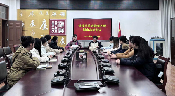 12月29日晚,银领学院首届金融英才班期末总结会议在学院会议室举行。学院副院长胡烨丹出席会议。学工办主任章甜甜主持会议。